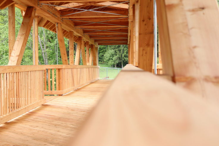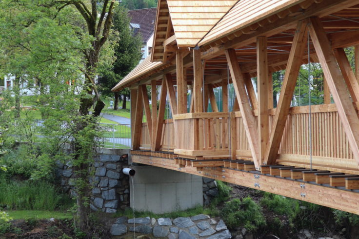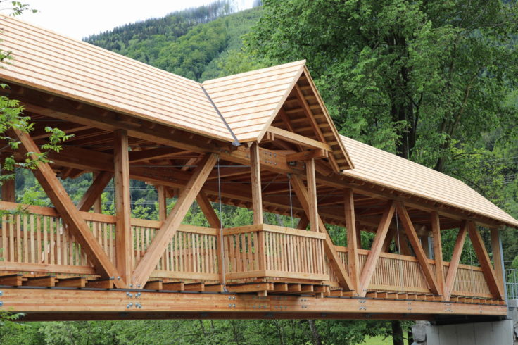 Der nachwachsende Rohstoff eignet sich aufgrund seiner sehr guten statischen Eigenschaften hervorragend für Sonderbauten mit weiten Traglasten, wie Brücken und Überführungen. Vor allem Fußgänger- oder Radbrücken befinden sich vielfach in Wald und Flur bei Wanderwegen und Radstrecken. Eine Brücke aus Holz fügt sich optimal in das natürliche Erscheinungsbild ein und trägt erheblich zur Naturbelassenheit bei. Die hohe Tragfähigkeit sorgt für Schutz und Sicherheit bei der Flussüberquerung.